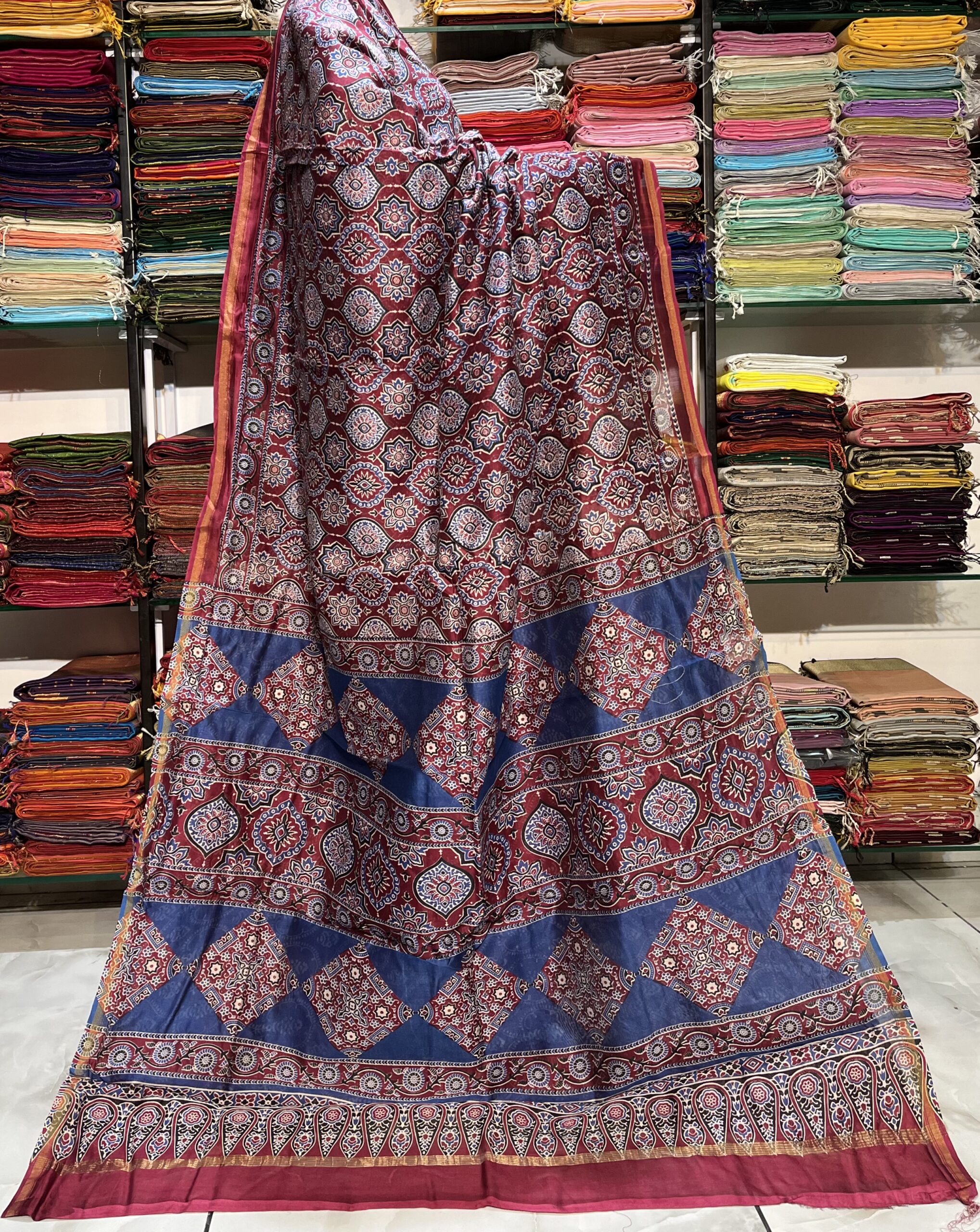 Be the first to review “Maheshwari Ajrakh Print Saree”