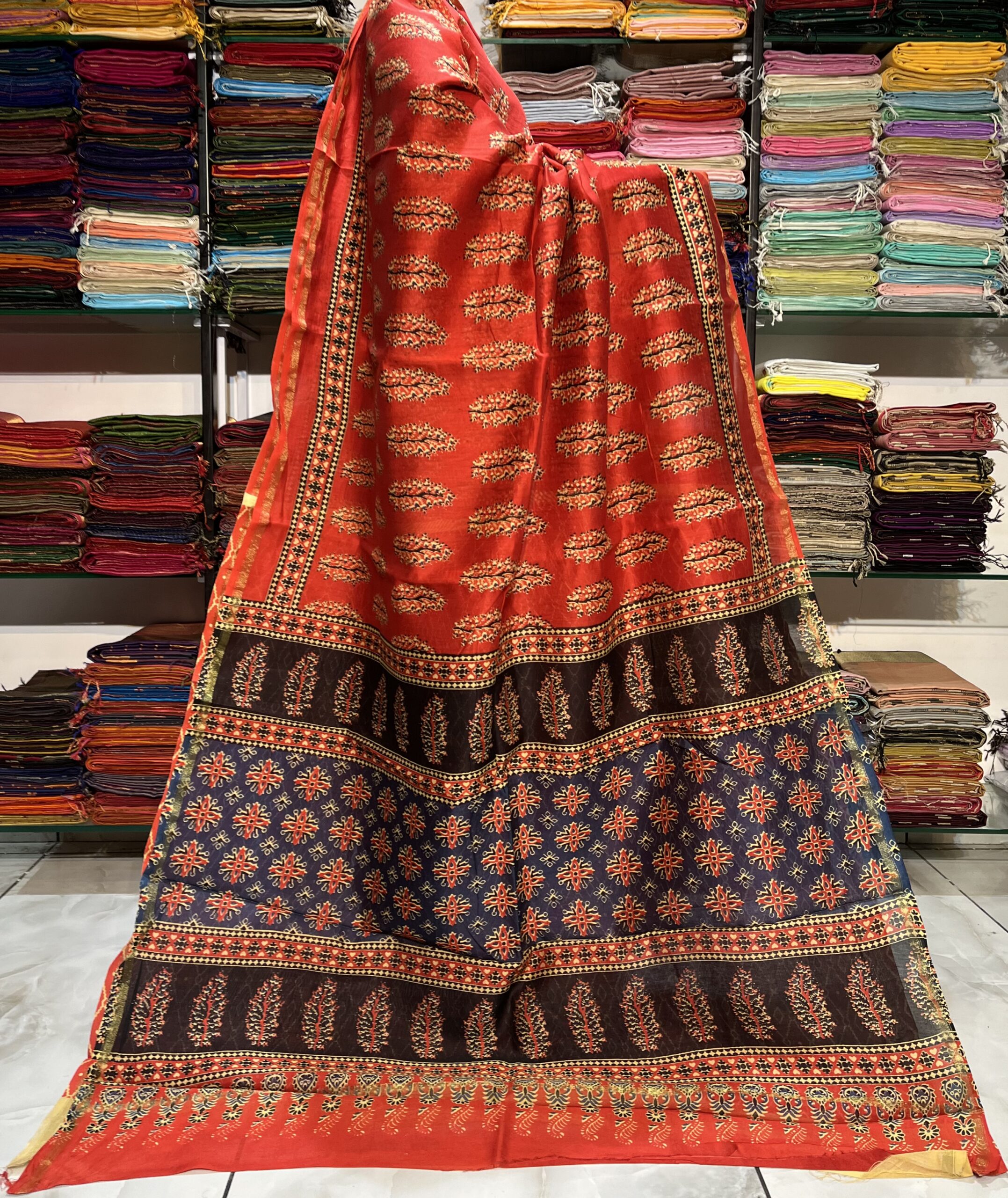 Maheshwari Ajrakh Print Saree