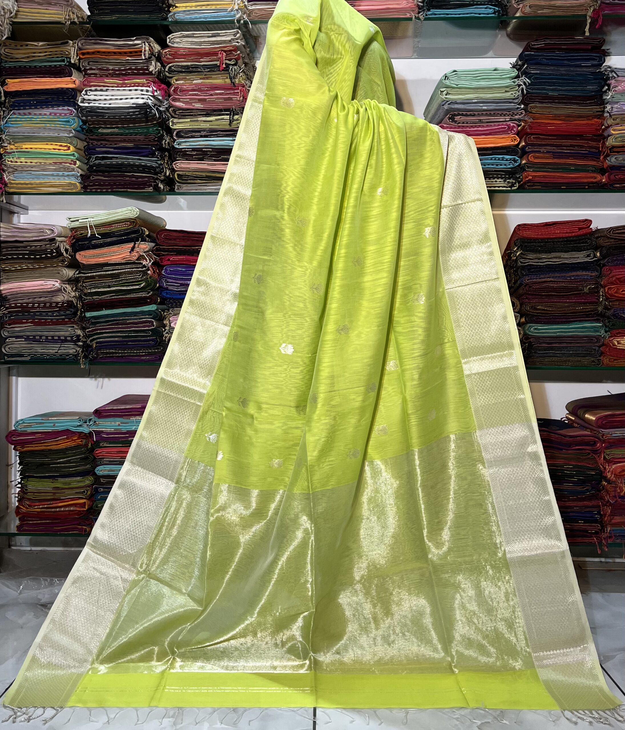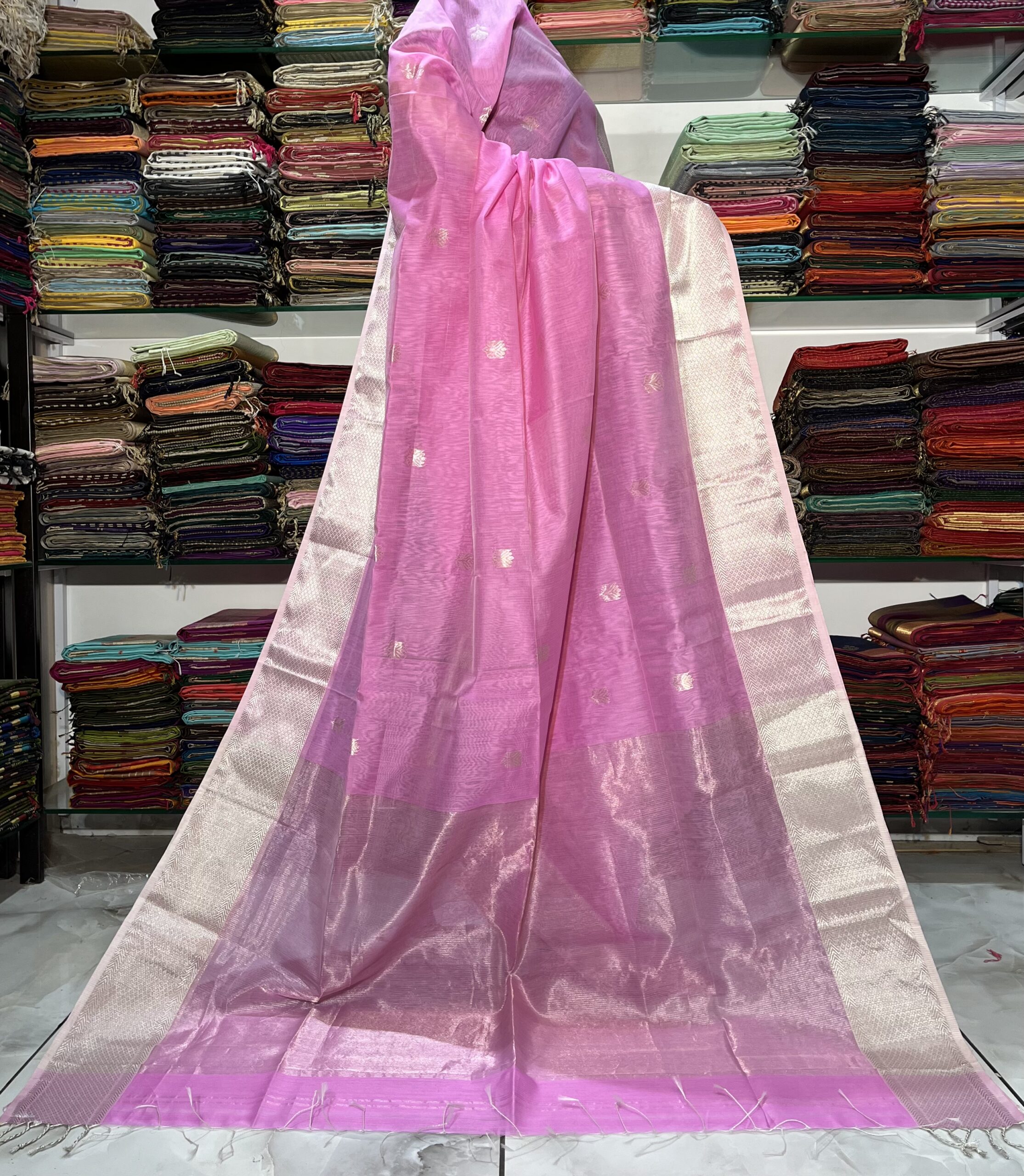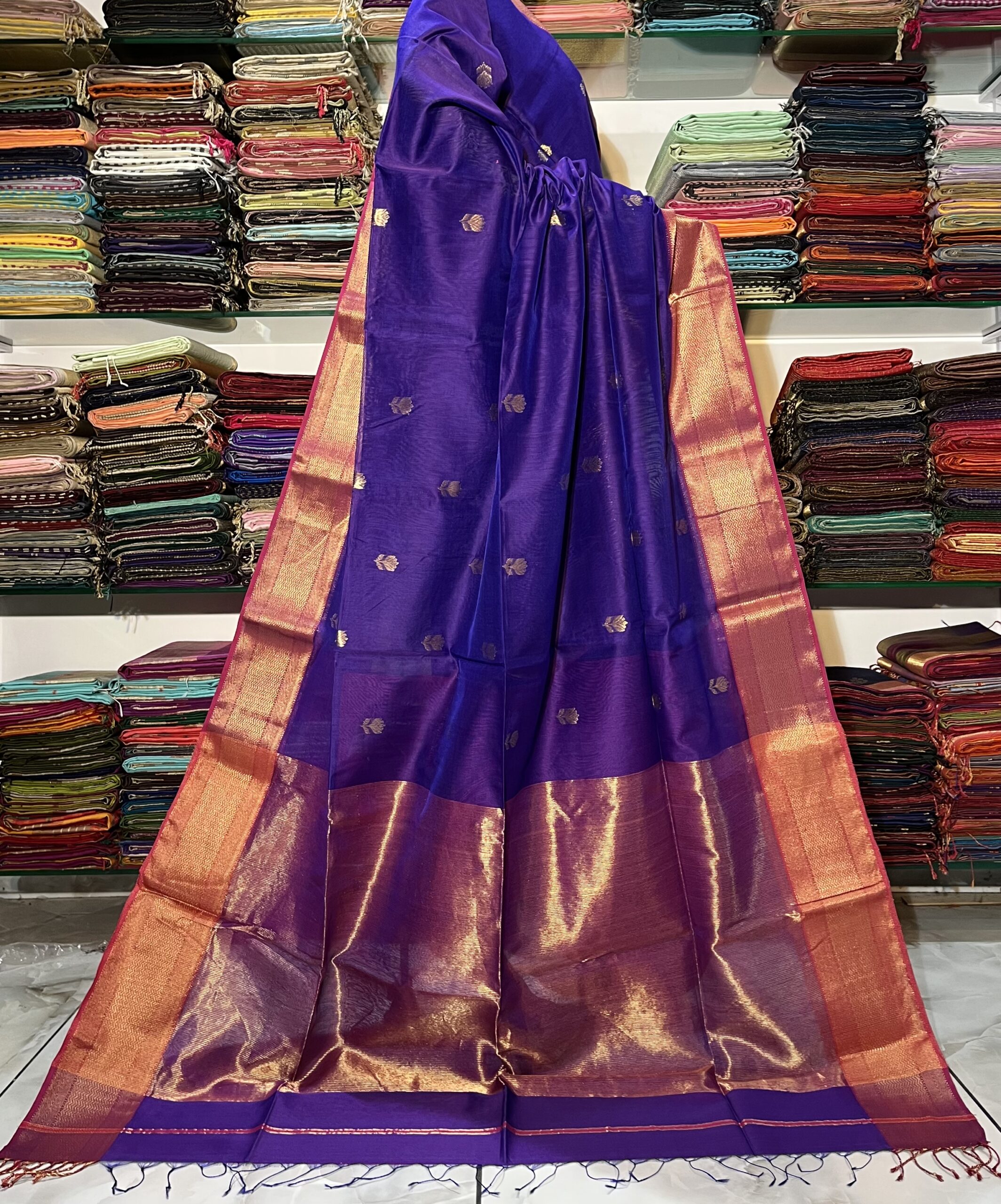 Be the first to review “Maheshwari All Over Zari Lotus Buti Saree”