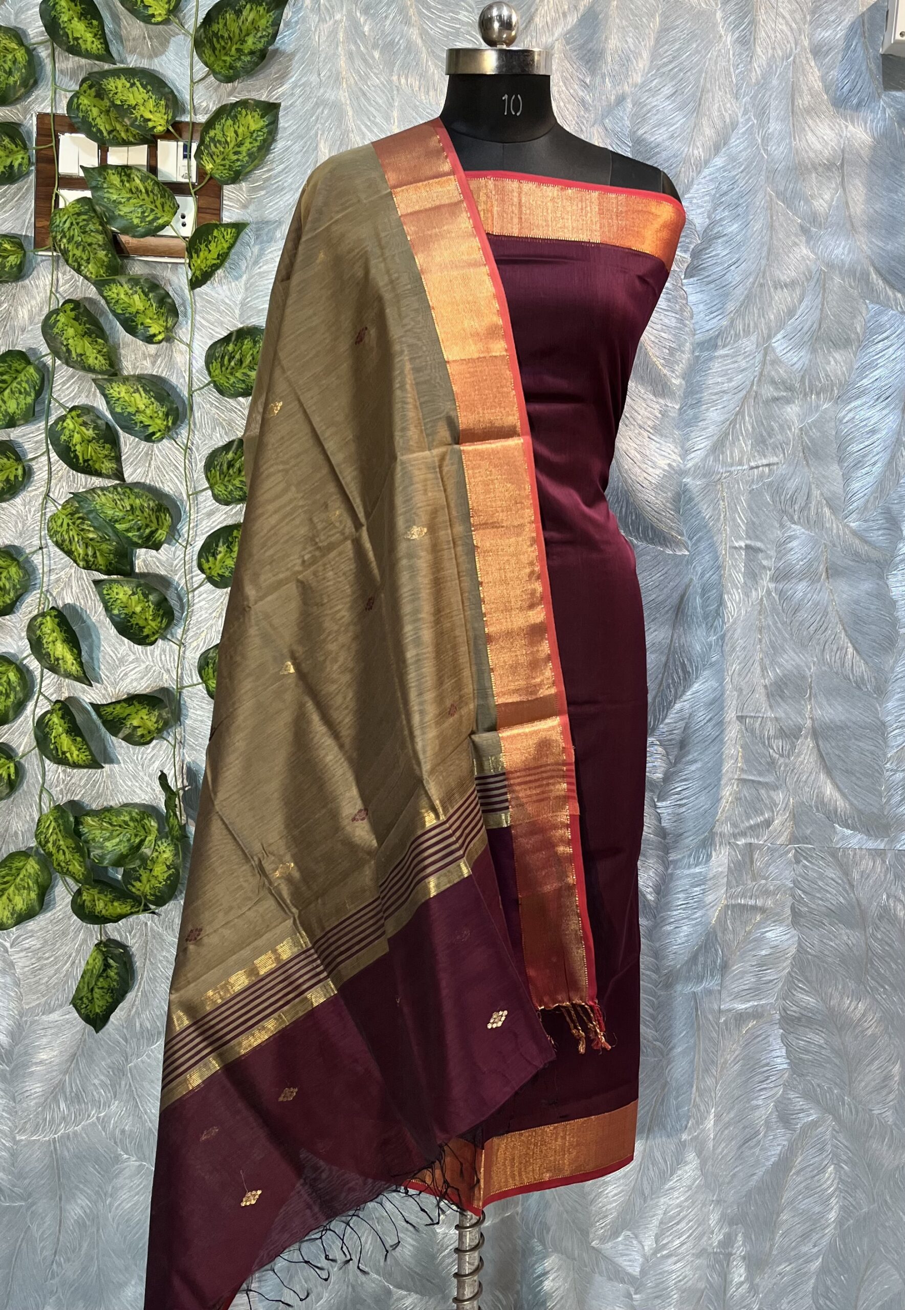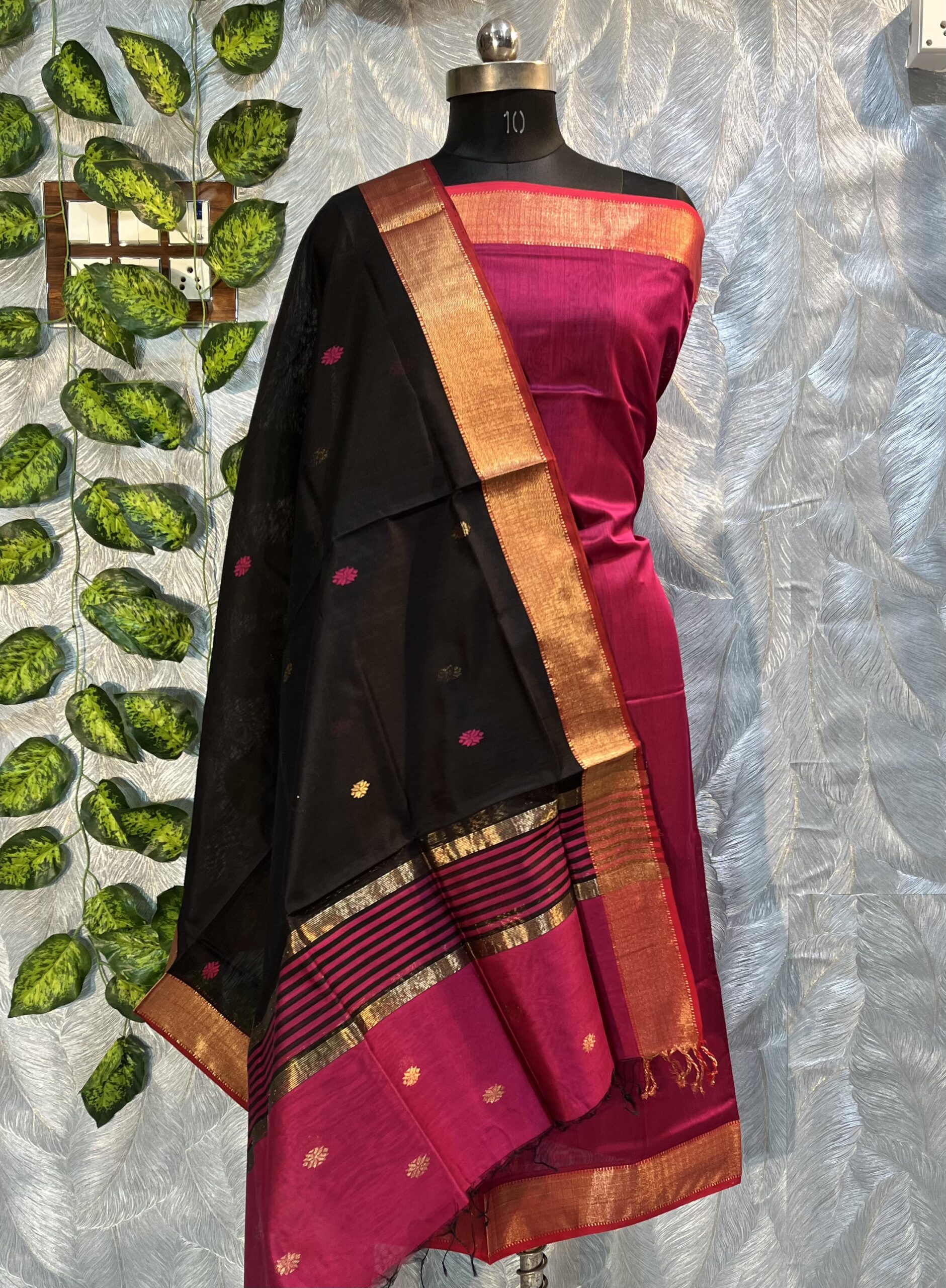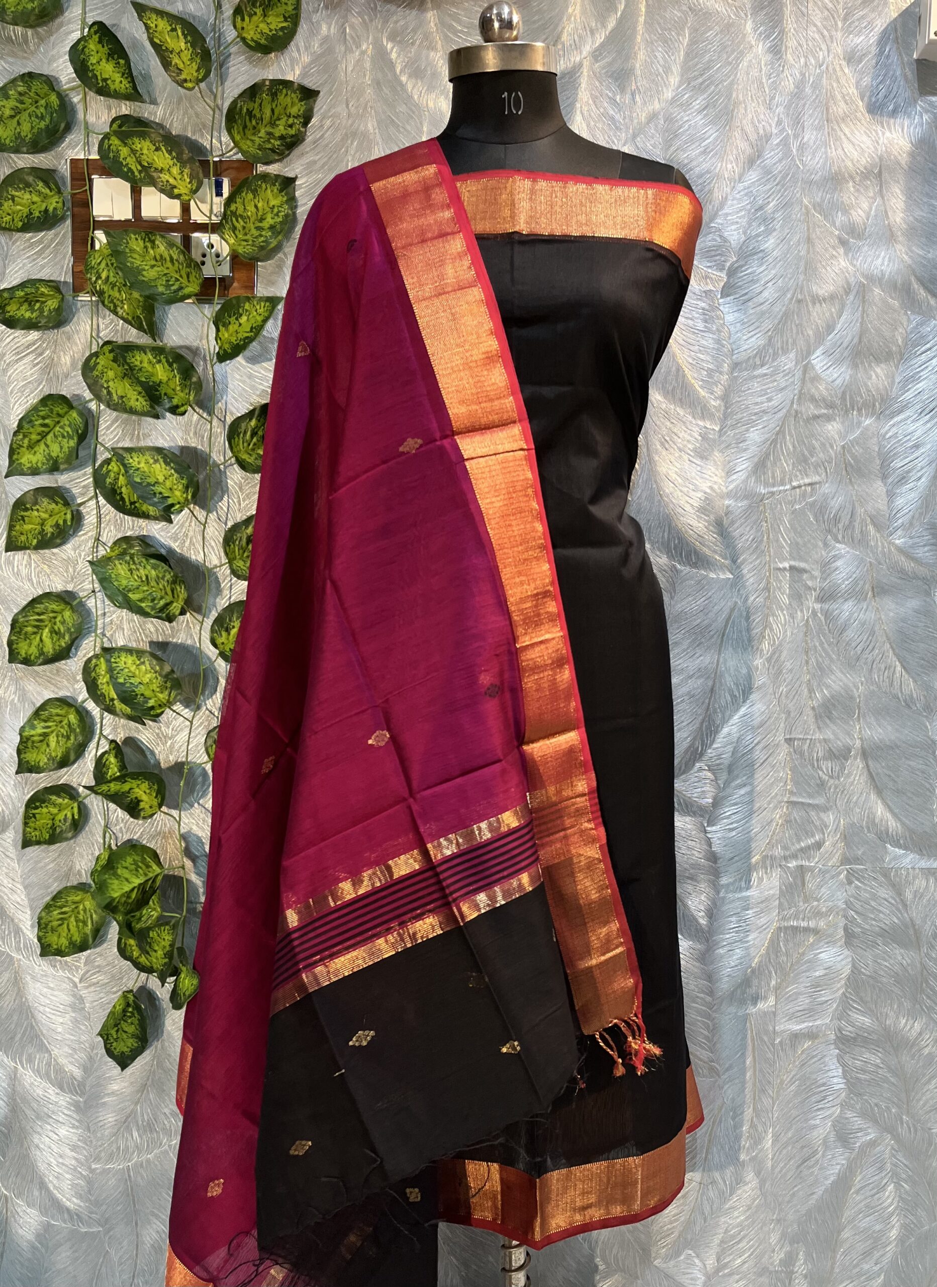 Maheshwari Diamond Buti Top & Dupatta Dress Material