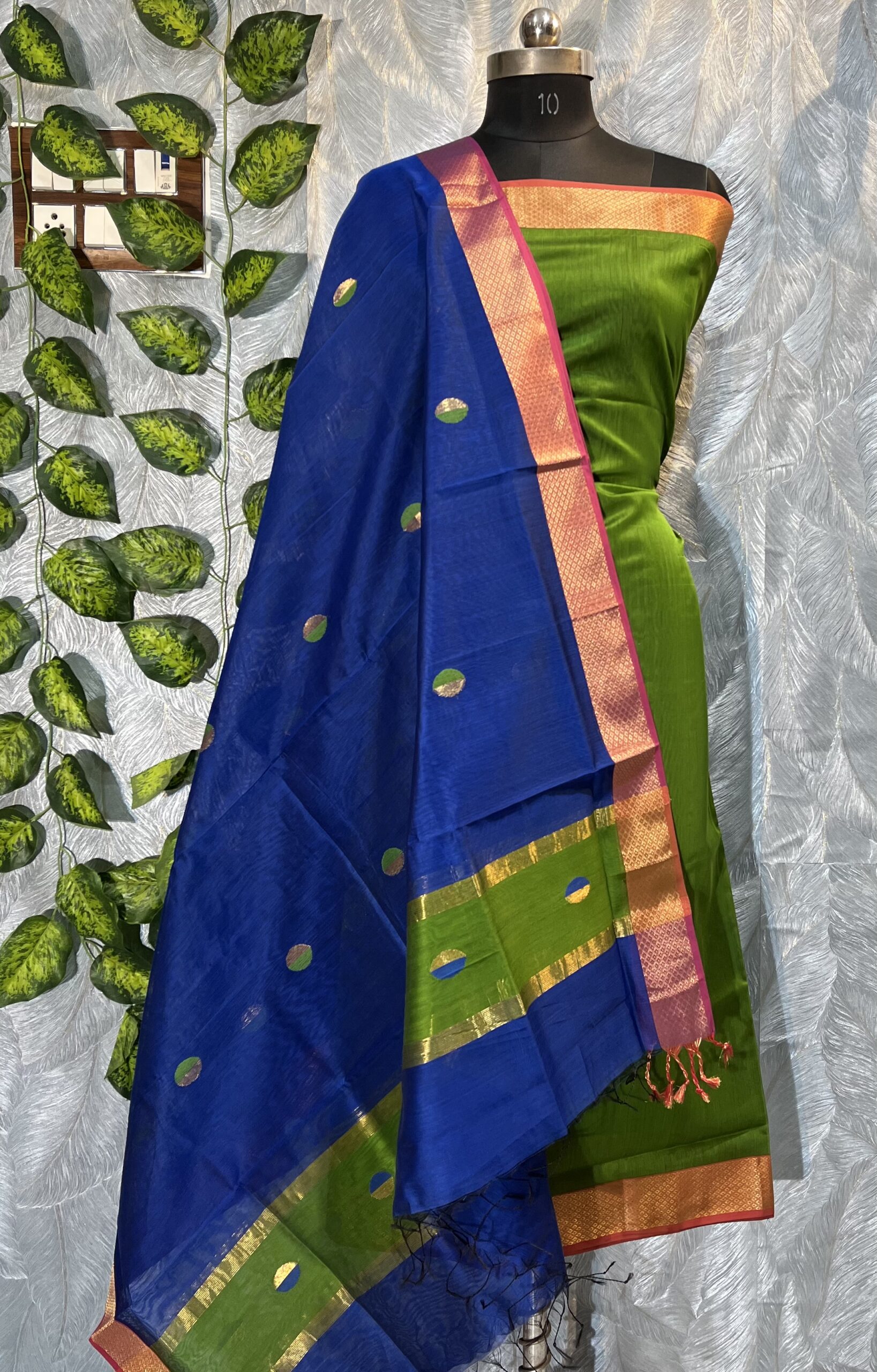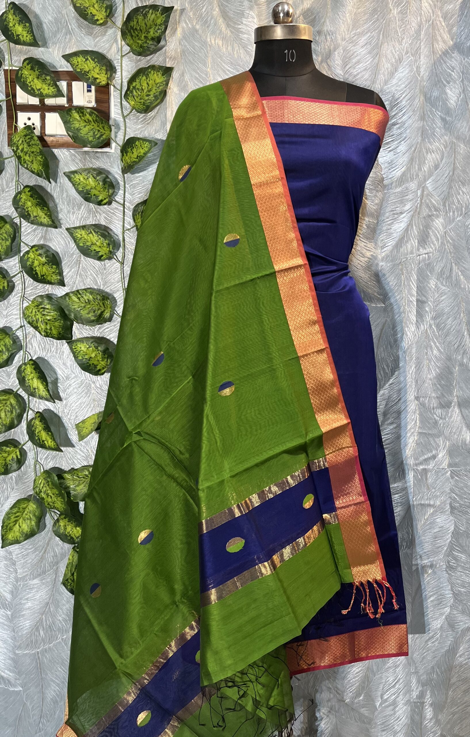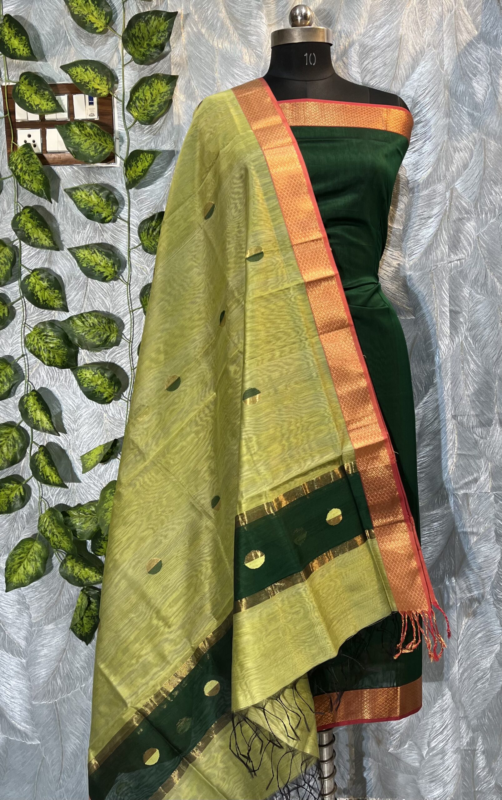 Maheshwari Dual Coin Buti Top & Dupatta Dress Material