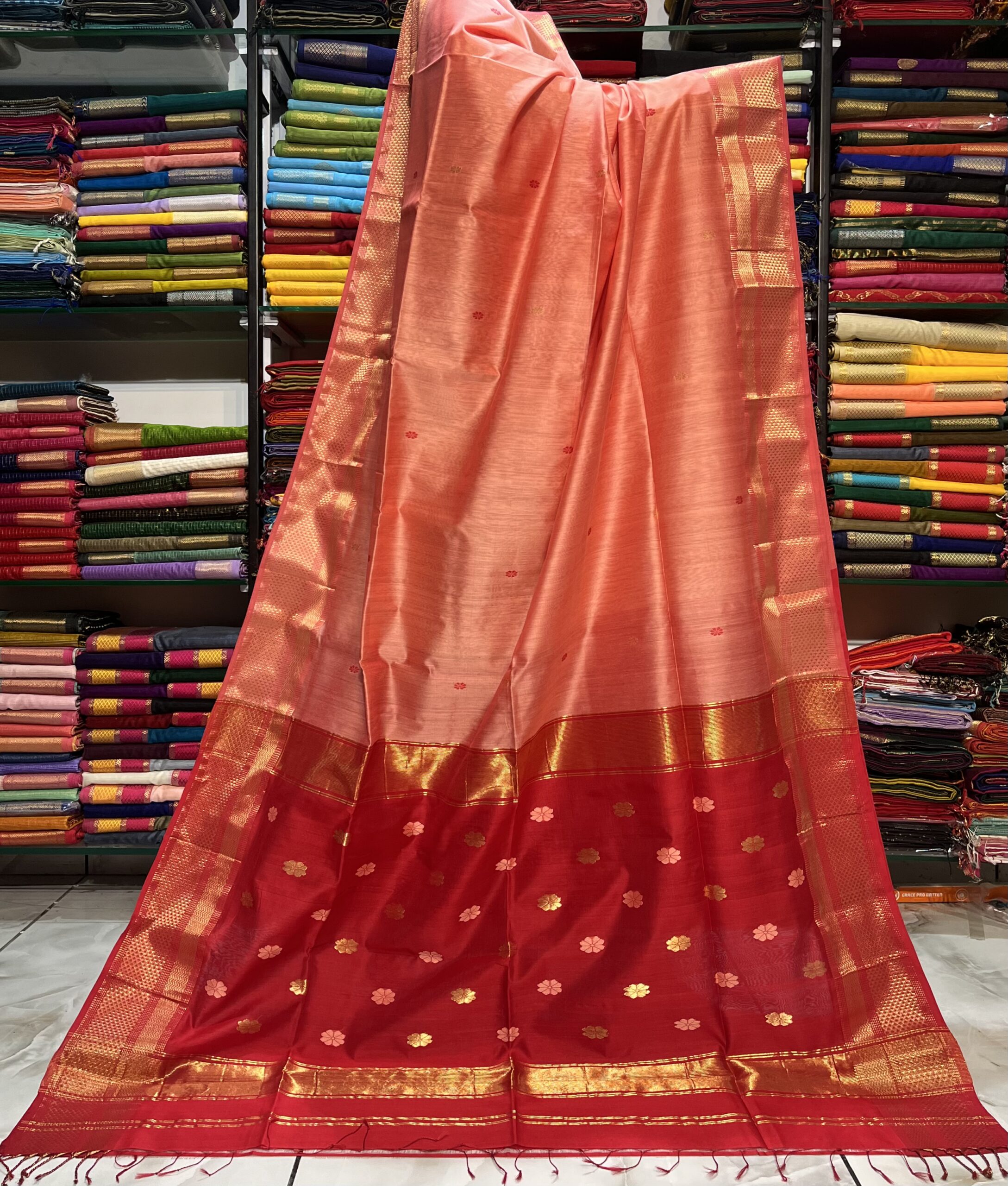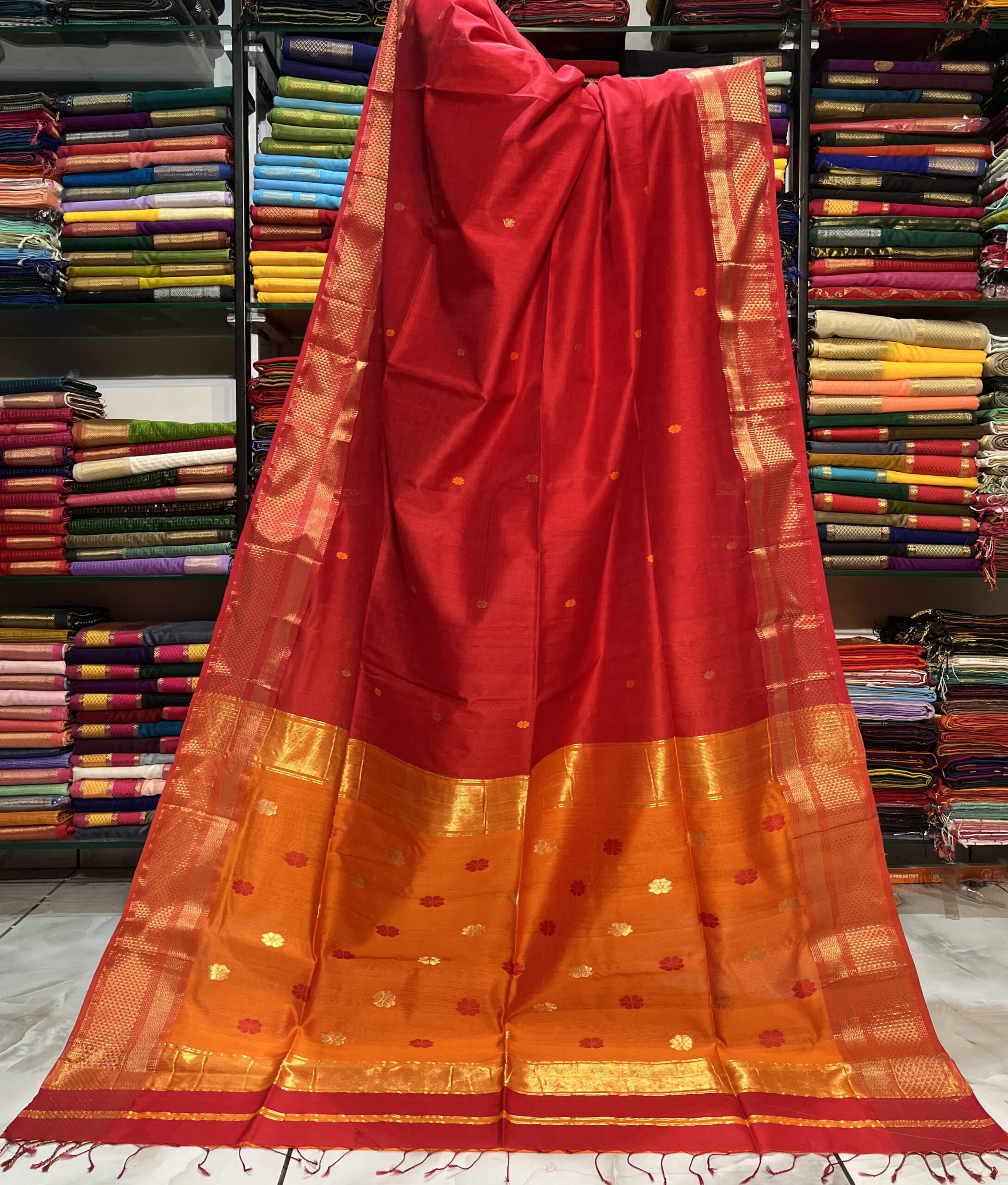 Be the first to review “Maheshwari Flower Buti Pallu Saree”