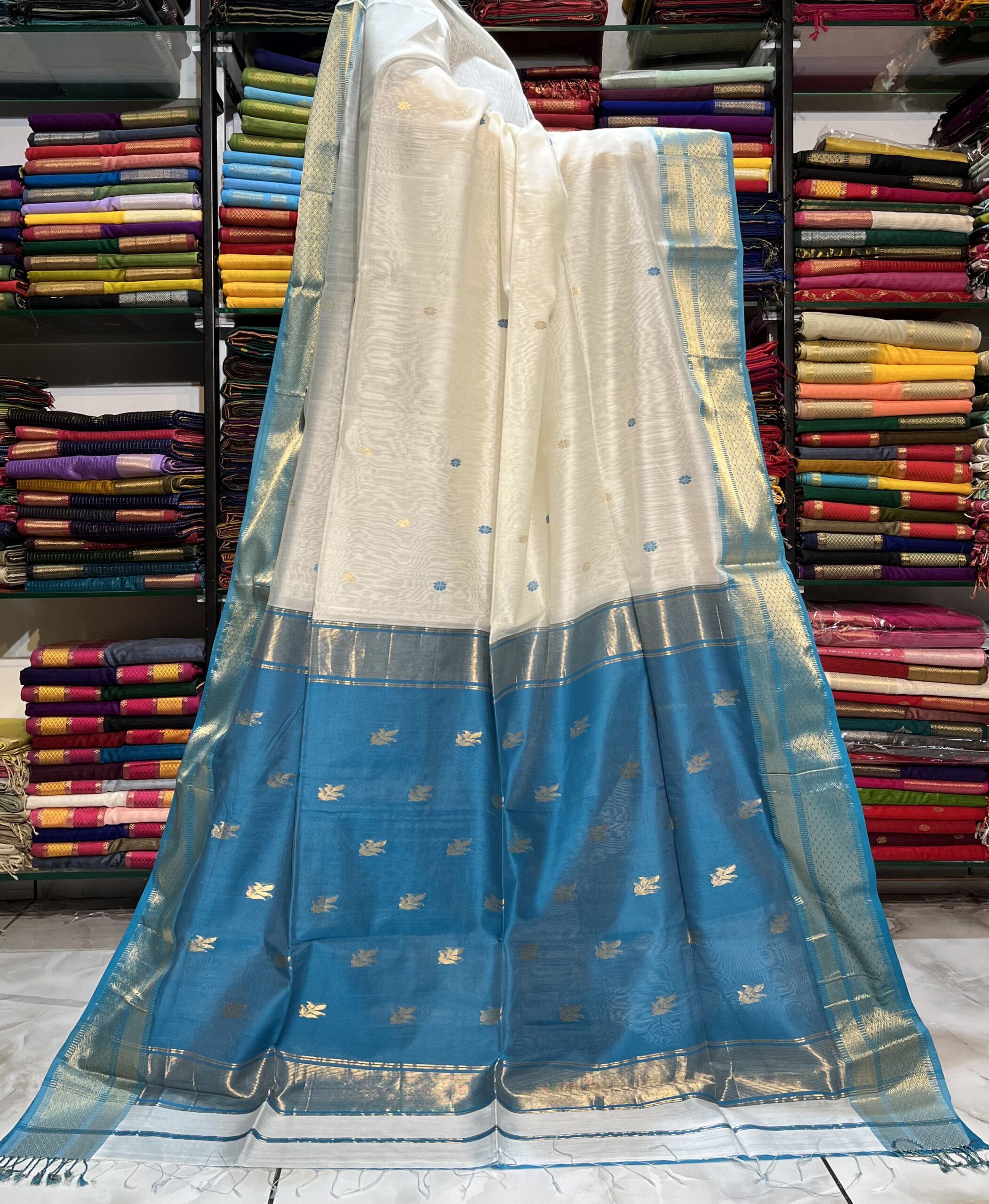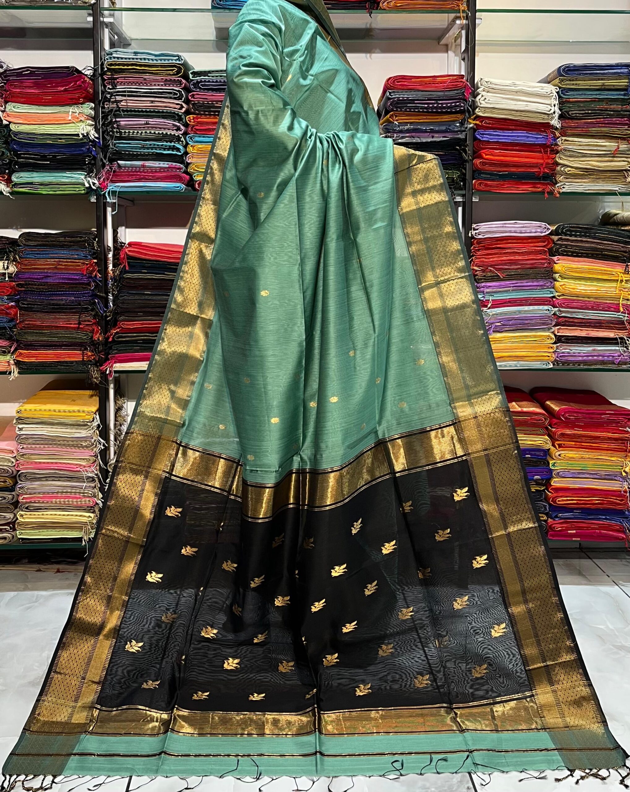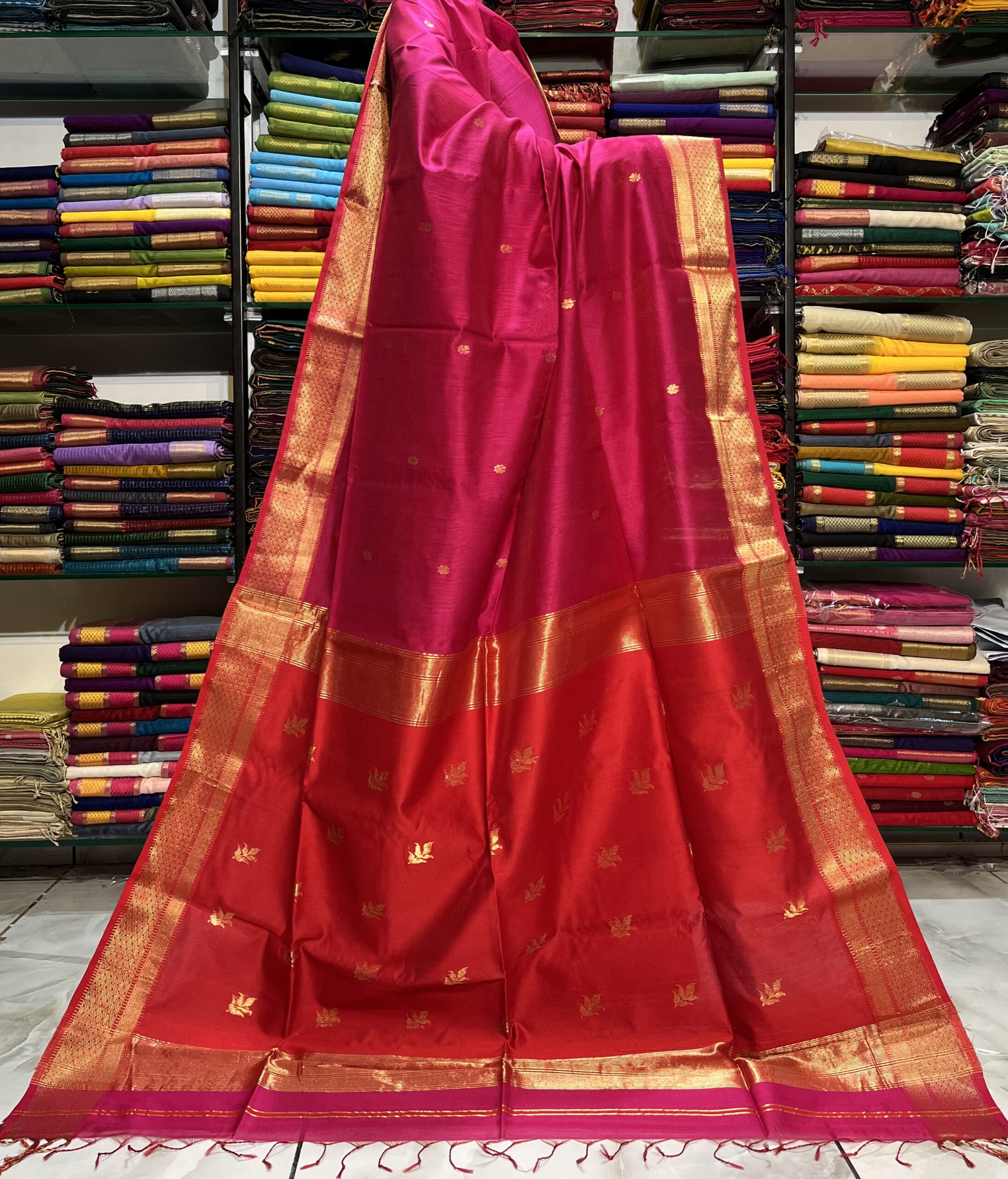 Be the first to review “Maheshwari Leaf Buti Pallu Saree”