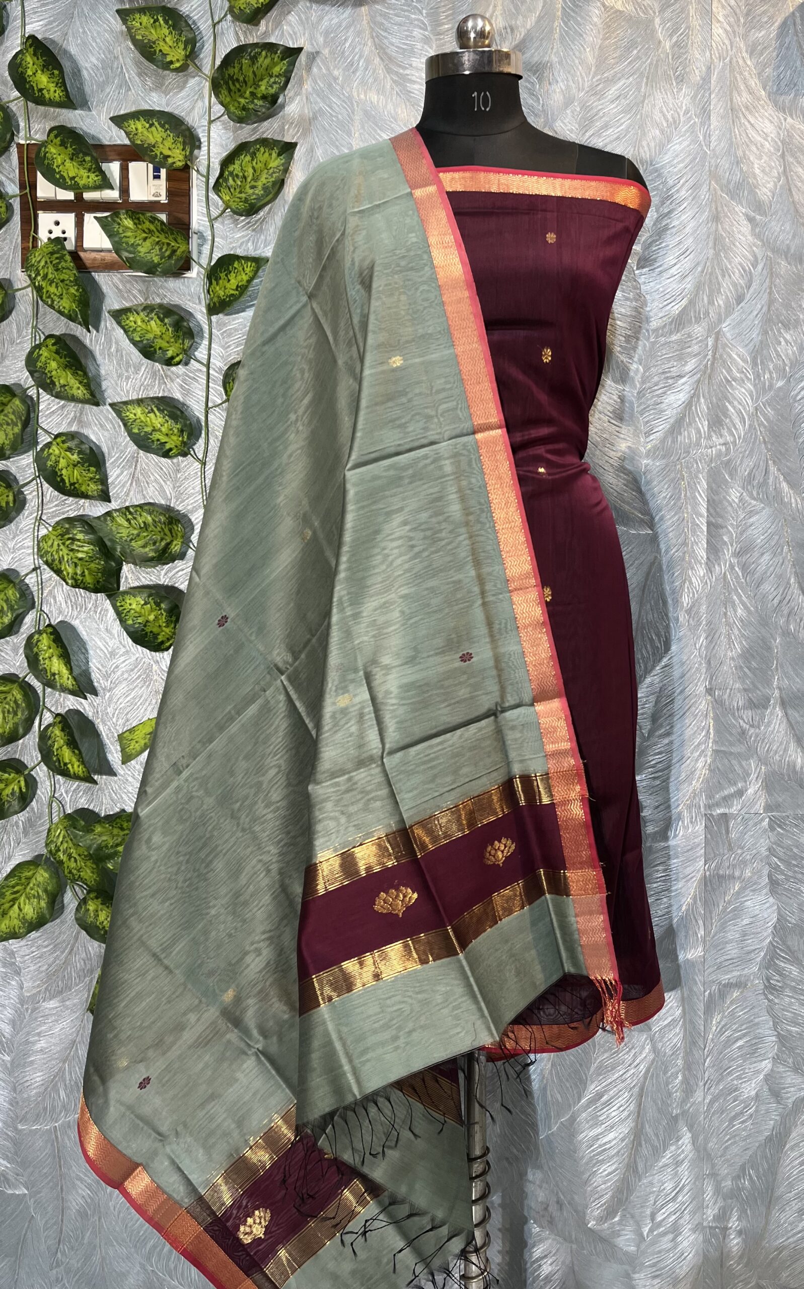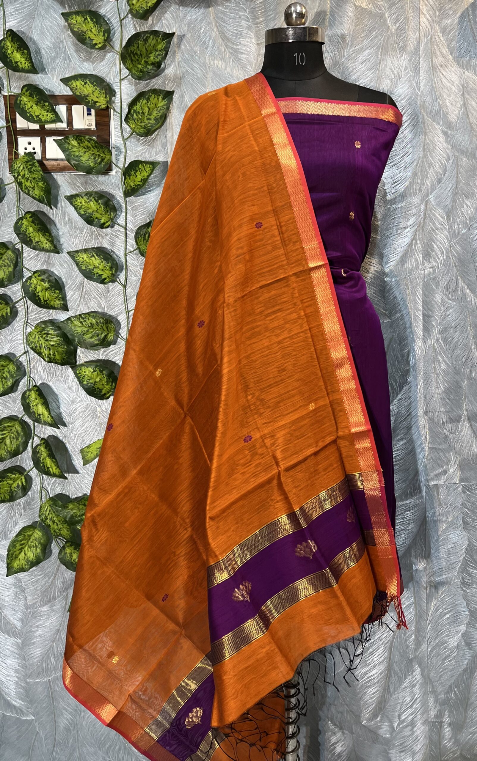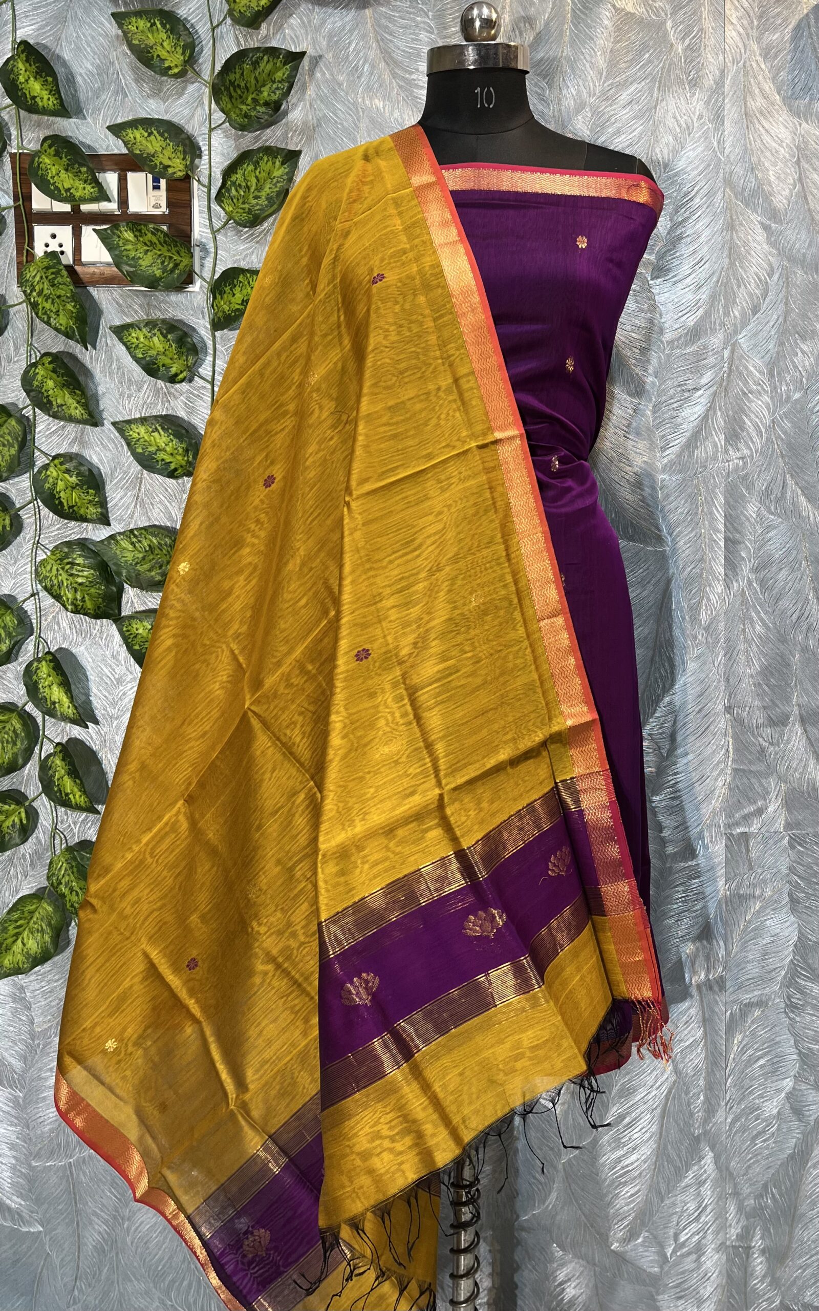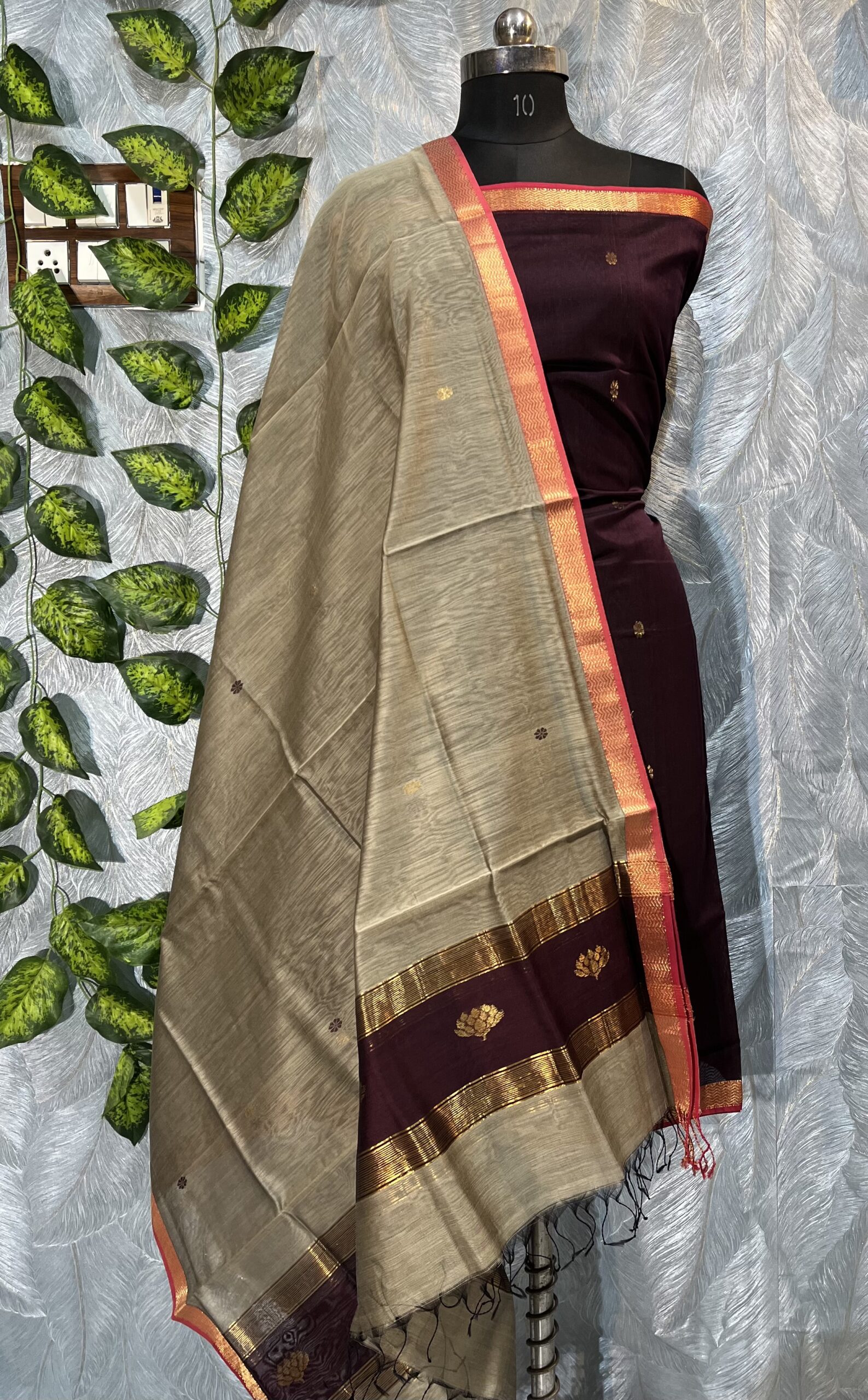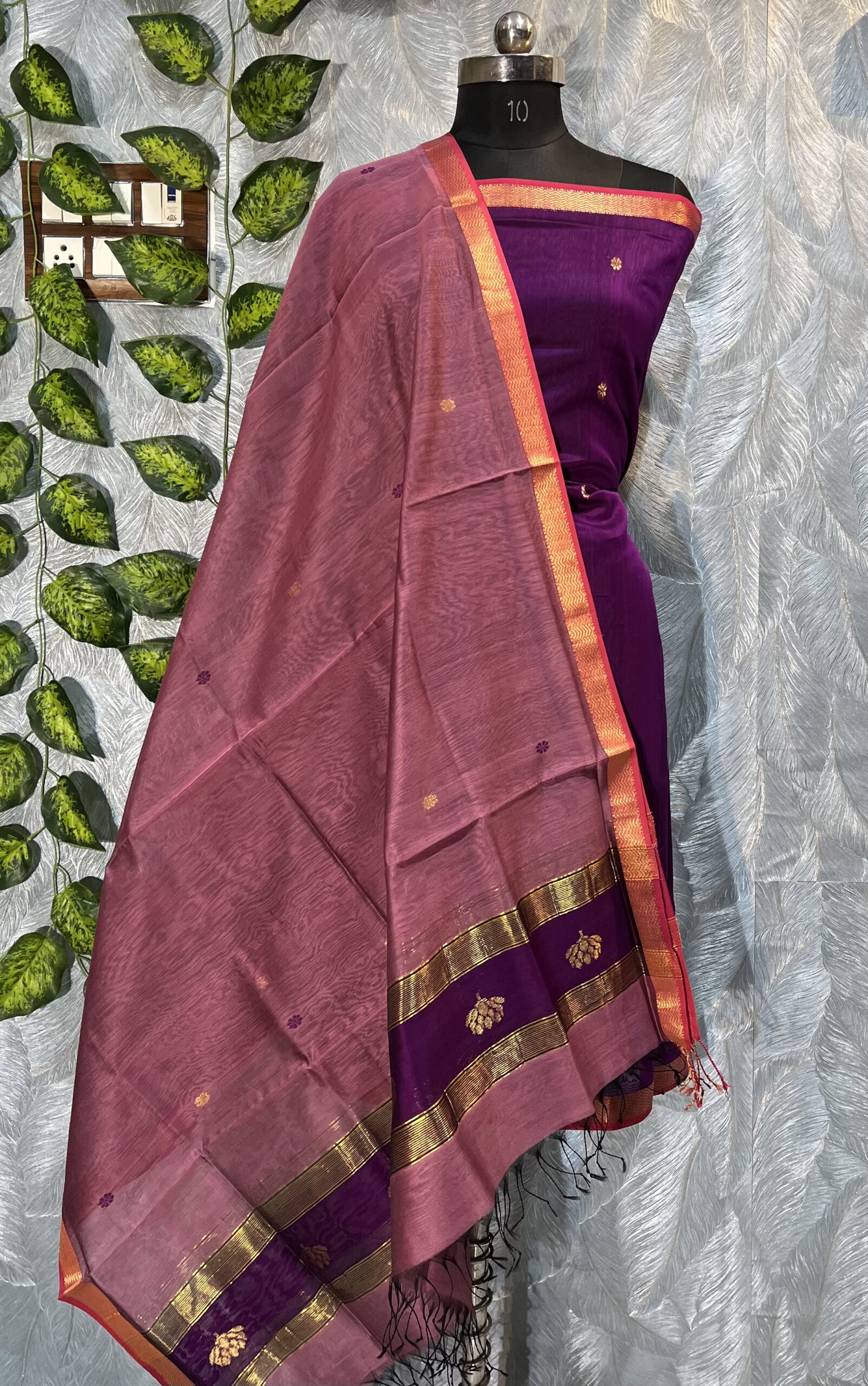 Maheshwari Lotus Buti Top & Dupatta Dress Material