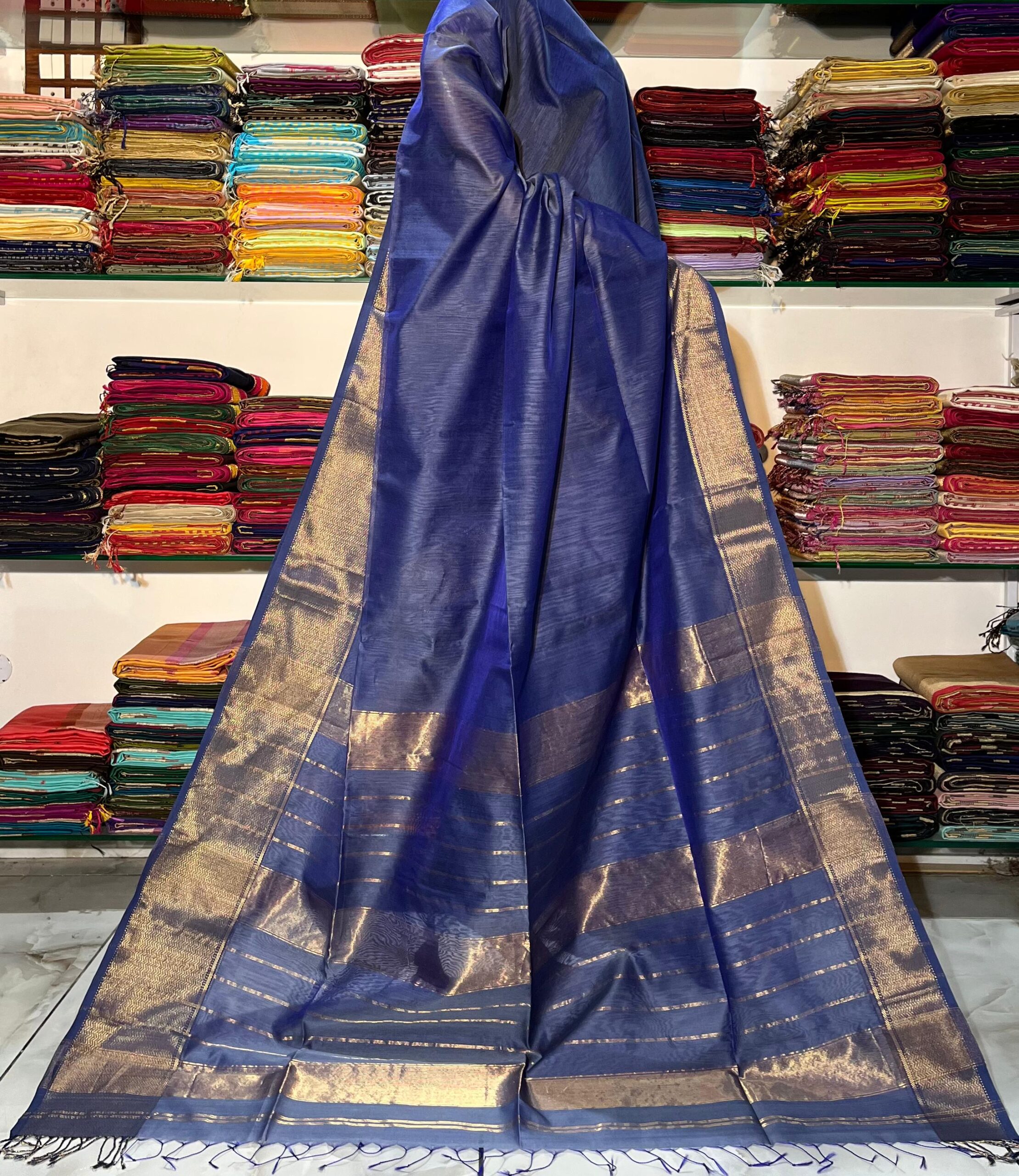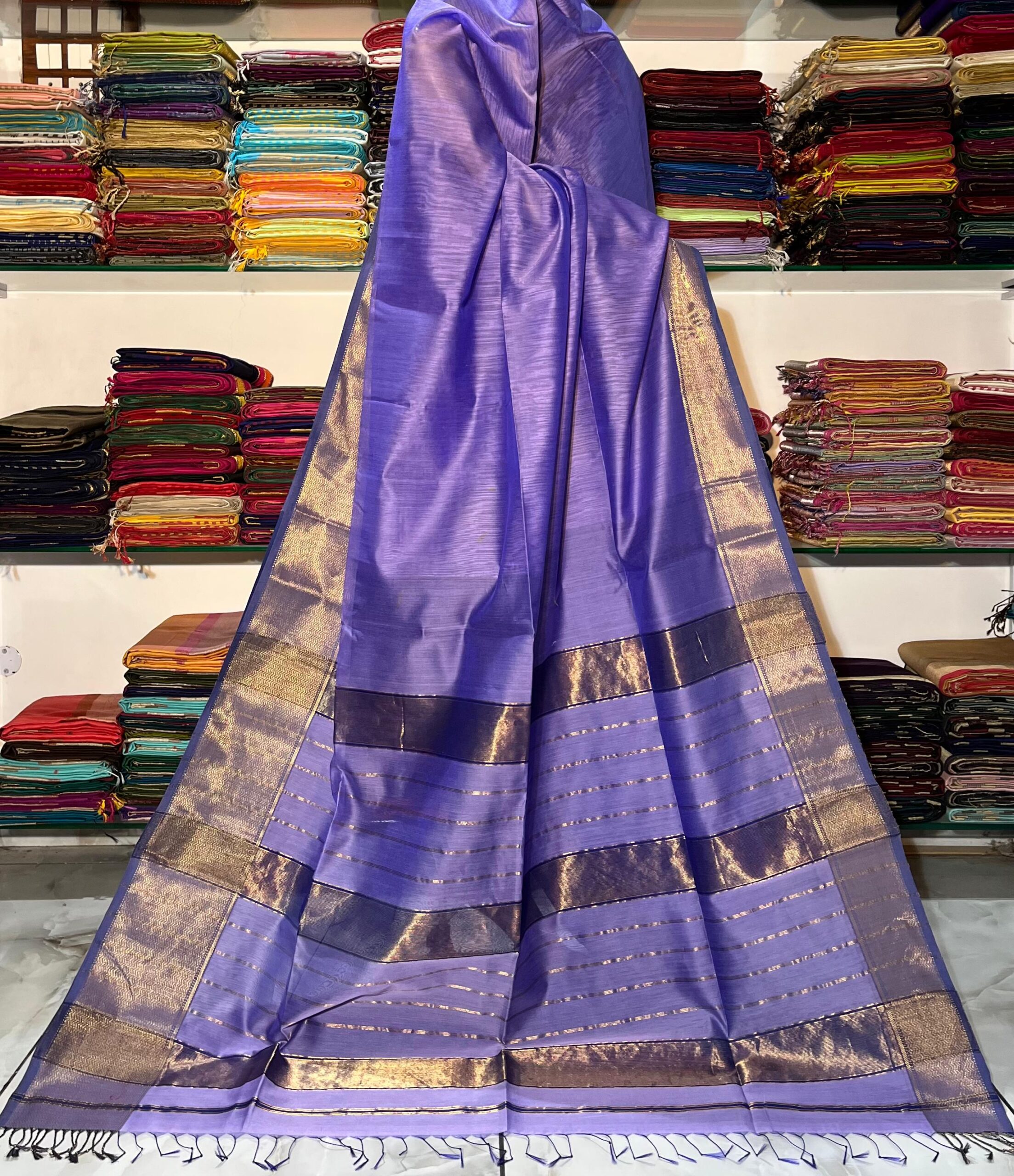 Be the first to review “Maheshwari Scott Zari Border Saree”