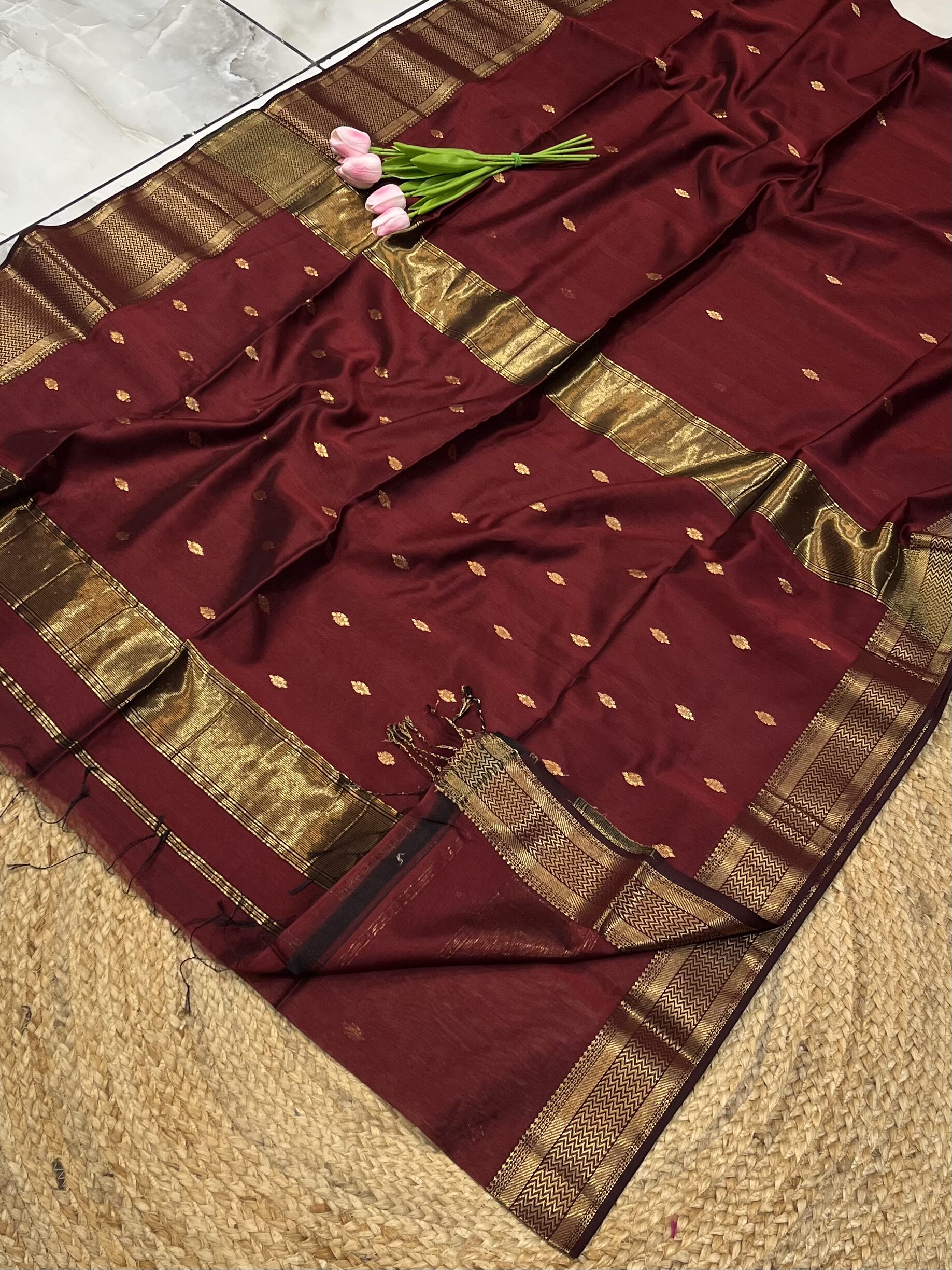 Maheshwari W Scott Zari Border Buti Saree