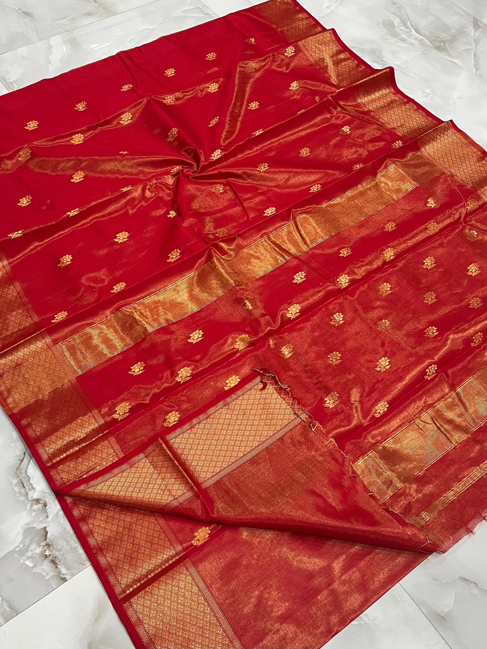 MAHESHWARI HANDWOVEN TISSUE ROSE RED COLOUR SAREE