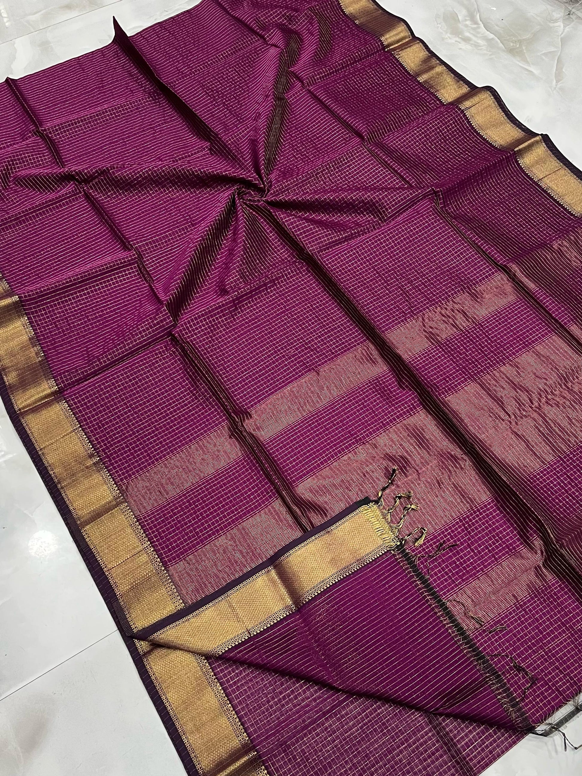 Zari Checks Saree – Golden Grid Elegance with a Modern Twist